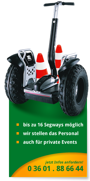 Unser mobiler Segway Parcour ist der ideale Event für Firmenfeste, Tagungen, Schulungen, Incentives, Geburtstagsfeiern, Promotion, Rahmenprogramm für Messen und vieles mehr. Nutzen Sie den Segwayeffekt und machen Ihre Veranstaltung zu einem unvergesslichen Erlebnis für Ihre Besucher oder Mitarbeiter.